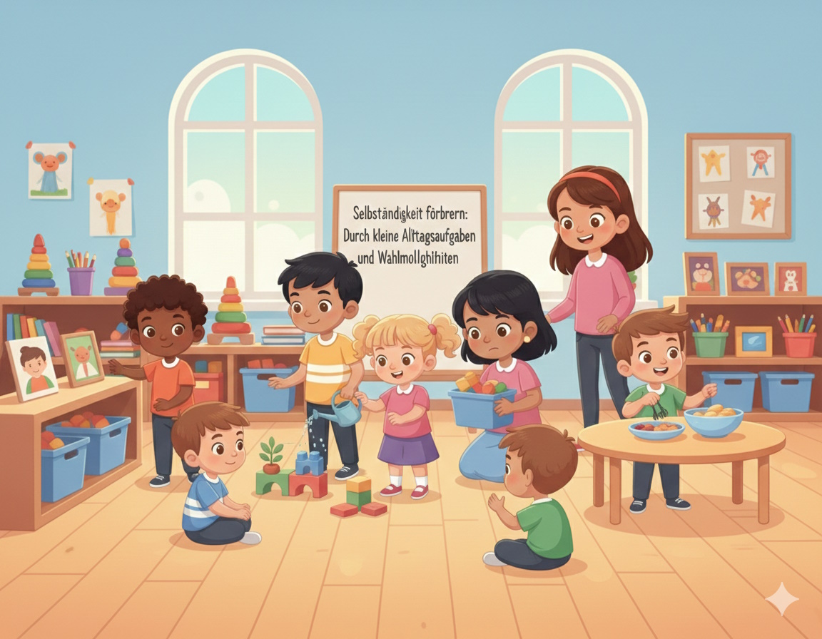 Förderung durch kleine Alltagsaufgaben und eigenständige Entscheidungen.
